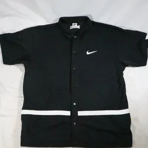 Excellent condition vintage 90s snap button collared short sleeve jersey shirt by NIKE. Clean throughout, no issues found. Great vintage piece! Actually has pockets too! No stains, spots, tears, holes, scuffs, fade or discoloration. Smoke and pet free.
