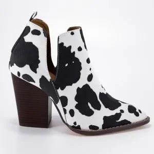 Cow Print Faux Leather Booties