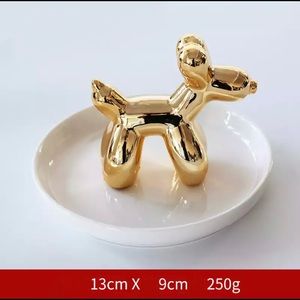 Adorable gold ballon dog on an off white plate. Great to hold all kinds of jewelry. New, unused