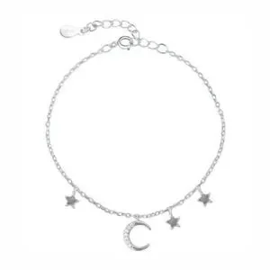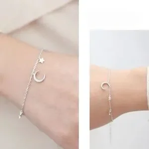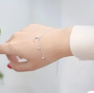 S925 sterling silver crescent moon stars bracelet