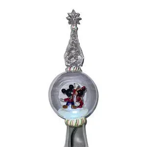 Rare Walt Disney Store Mickey Minnie 11" Lighted Clear Glass Tree Topper HTF