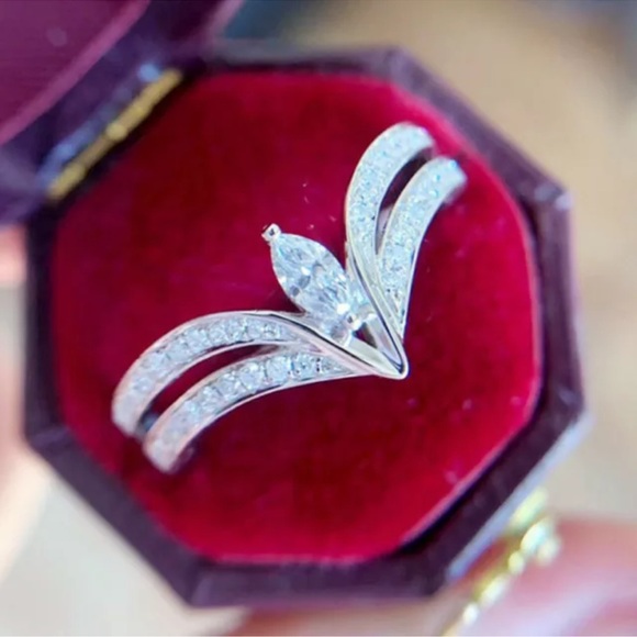 Women 925 Silver Wedding Ring Luxury Marquise Cut Cubic Zirconia