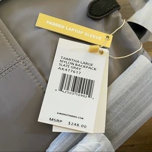 Aimee Ketsenberg Tamitha large nylon backpack in slate grey. New with tags and in original packaging. See pictures for additional details.