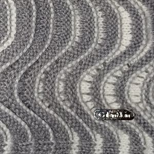 Calvin Klein metal tag on outside of scarf
