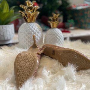 Karl Lagerfield Royale Pump In Nude/ Rose Gold Leather Snake Skin 3/4 inch heel.