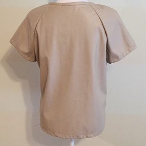 Calvin Klein taupe faux leather cutout short sleeve crew neck blouse top. Great condition!! Size M