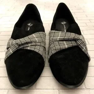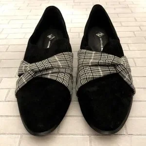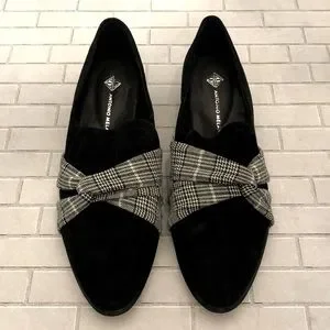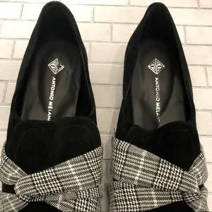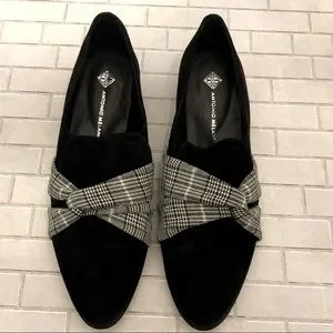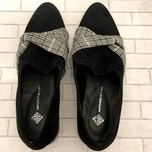 Antonio Melani Loafers ~ Houndstooth & Glen Check Plaid Design ~ Genuine Leather ~ Size 7 Medium ~ Heel is approximately 1 1/2”