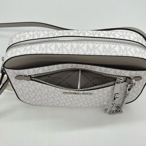 Michael Kors Lg EW ZIP Chain Crossbody Bag PVC and Saffiano Leather Zippered top Closure