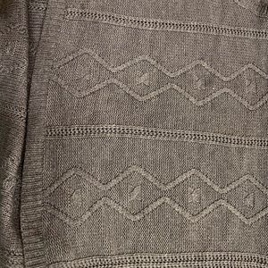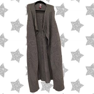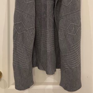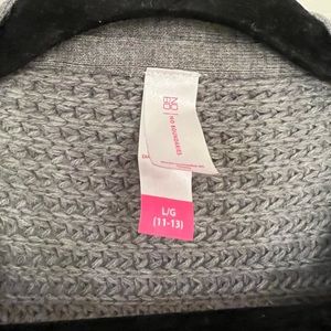 Very pretty Sweater Vest Grey Size Large (11-13). Sleeveless, measures 17” armpit to armpit and 40” long. Made to be worn open as it has no buttons or zipper. Has great details throughout.