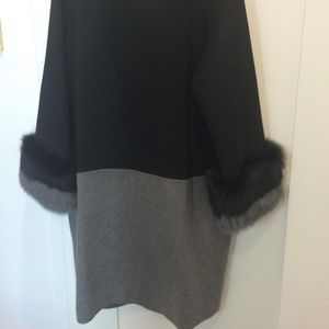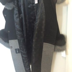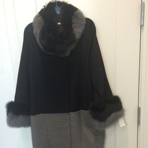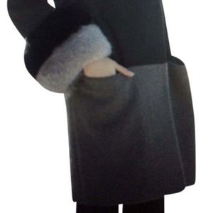 Belle Fare Black/Grey Cashmere With Fox Trim Coat