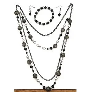 Fashion Jewelry Necklace Earrings Bracelet Set Arcrylic Gunmetal Black Silver