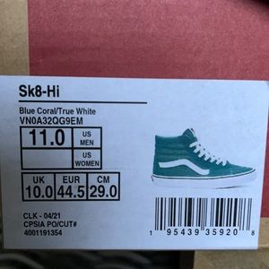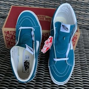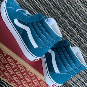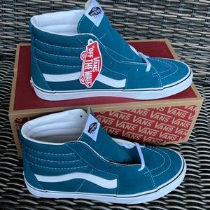 Brand new in the box authentic women`s Vans Sk8-Hi Blue Coral/True White
