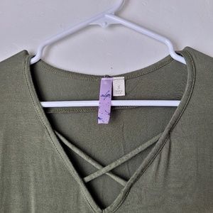 LAST CHANCE!Alya Olive Green Strappy Front Long sleeve Blouse