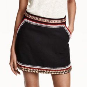 H&M Embellished Embroidered Beaded Boho Pocket Black Mini Skirt