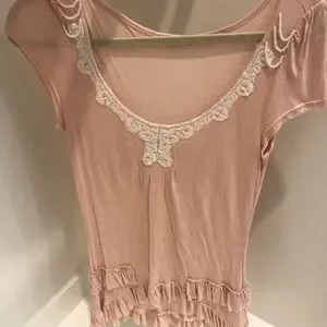 Lovely vintage top with pearls and lace, lightweight fabric, embroidered, peasant, peplum GUC