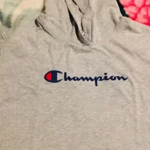 Men’s champion grey hoodie Has 1 front pocket, Long sleeve, Size Large: Runssmall