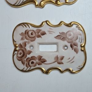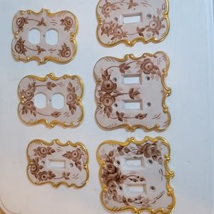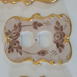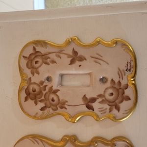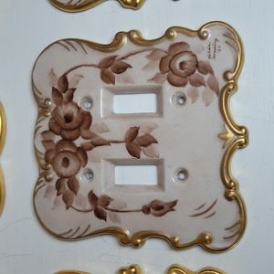 Condition- Good/ One electrical outlet cover has a crack but it seems strong enough that you could use it. Two of the single light switch covers have some faded spots. Some of the gilding has rubbed off. See pics.