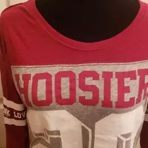 NEW PINK HOOSIER 3/4 Sleeve Tee ❤ Shirt 😍😍 Red N White.