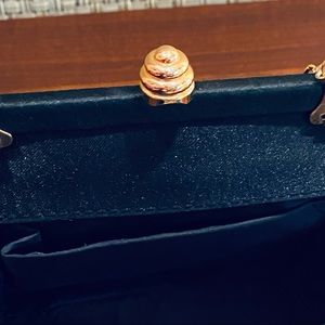 Dance the night away wearing this vintage 1980s Black Lace Beehive Clasp Evening Bag! Professionally authenticated, this stunning bag is done in all over black lace with a black matte satin covering the frame. Bag is slightly padded giving it shape and delicate beauty. Features exquisite gold beehive clasp, full satin lining, slip pocket and lightweight gold chain to wear as shoulder bag. Chain easily tucks for use as clutch. An elegant evening bag, perfect to hold essentials!💕