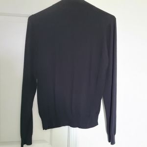 Great basic sweater elevated with buttons on the shoulder. Silk blend, machine washable. Mock neck. Worn once. Very soft. No flaws. Style AQ555. Smoke free home.