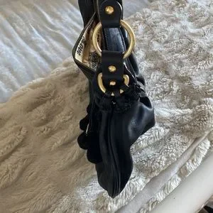 Cute Juicy Couture shoulder bag, one side buckle is broken and small scuff on backside. Interior pockets and zipper work, pet and smoke free home.