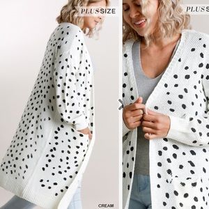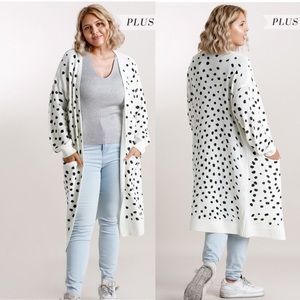 Sale Umgee NEW Dalmatian Hand Stamped Long Open Front Cardigan Sweater XL 1X 2X