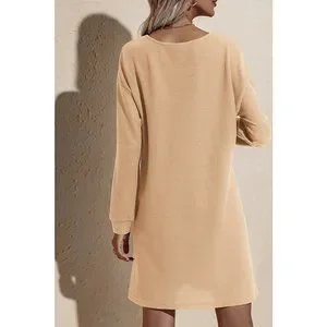 V-NECK LONG SLEEVE SWEATER DRESS
