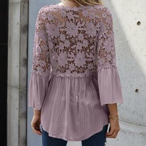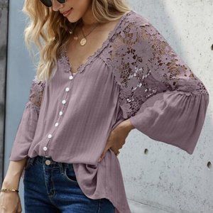 Classic Floral Embroidered Crochet Lace Button Down Blouse