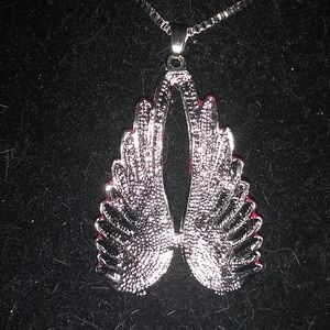 2" x 1.5" wings. 24" silver tone chain with 2" extender chain.