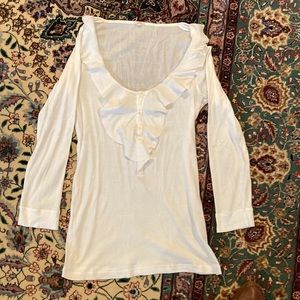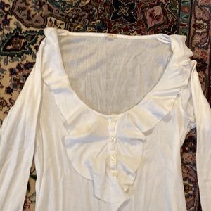 Very soft off white cotton long sleeve ruffle around the neck V-neck