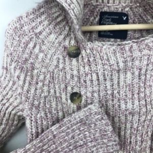 EUC American Eagle Sweater Jacket. Has a purple hue to it. Cozy and cute but TOO warm for Texas.