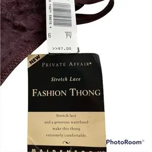 Vintage Private Affair burgundy lace stretchy thong NWT SZ 6