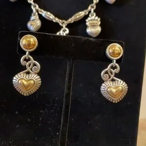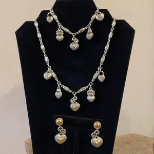 Gently used! Vintage Brighton jewelry set which includes a necklace, bracelet, and pair of earrings. Necklace length: 18 inches. Bracelet length: 9.5 inches. A beautiful and timeless set!