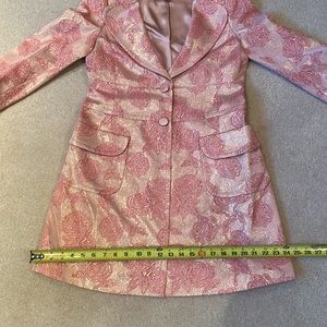 One of a kind like NEW Banana Republic sparkly pink and gold rosette jacket size medium. Fully lined, 3/4 sleeves with slit, two button front closure with v neck and lapels. Even more stunning in person! Photos don’t do this jacket justice.