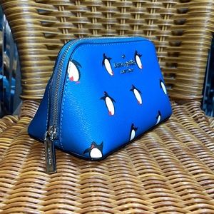♠️kate spade Arctic Friends Penguin Cosmetic Case, Blue Multi NWT