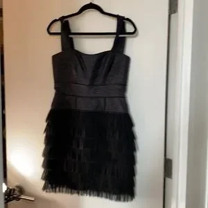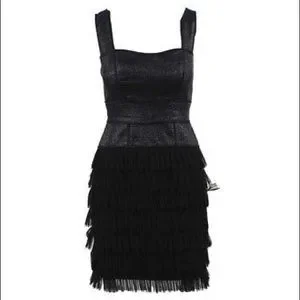 Zac Posen Blue Black Cotton Blend Fringed cocktail Black tie Dress 8