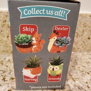 This is a brand new, 4-piece set of ceramic Animal Planters in a woodland / forest theme.