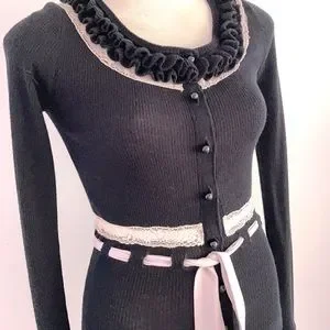 Y2k ALANNAH HILL 100% merino Cardigan with silk ties SIZE 6