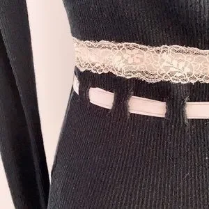 ▪️vertical ribbed knit, with contrast horizontal rib at cuffs, hem and frill.