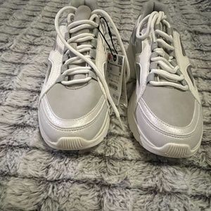 Never worn brand new with tags, comfortable, cute white and grey sneakers. Examine pics for all the little extras like the back glitter on the back.