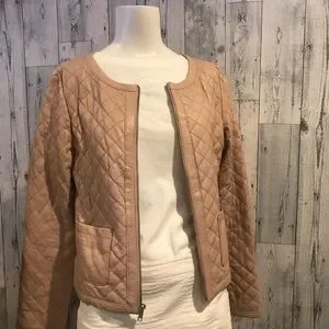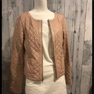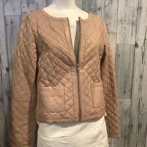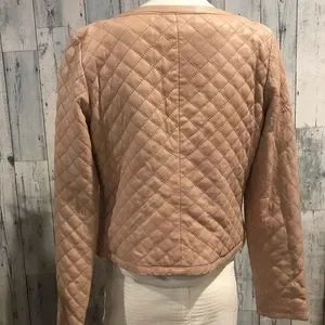 Designed in Seattle “Hinge” leather jacket is in excellent condition. Quilted leather in the soft blush/beige colour. Cropped style, front pockets.