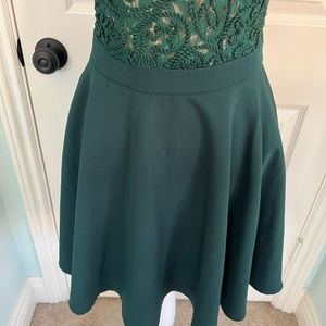 Absolutely stunning Romeo + Juliet Couture emerald green, lace brocade, fit and flare dress.