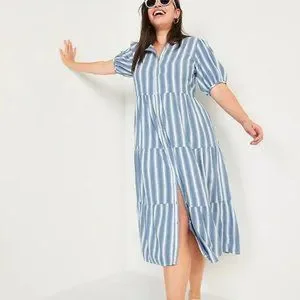 Old Navy Puff-Sleeve Tiered Striped Plus Midi Swing Dress for Women New