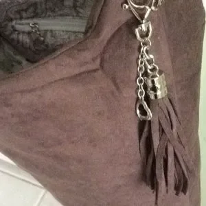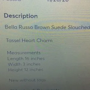 This is brand new. Never used. Really beautiful. Brown in color. Pretty heart hanging at tassel nice and roomy