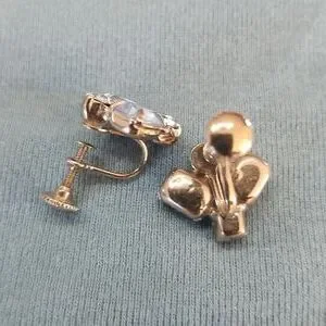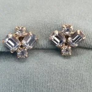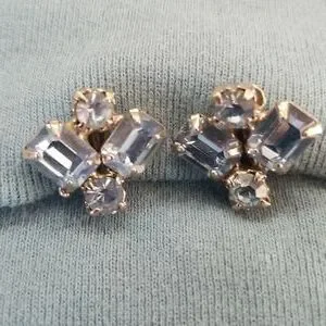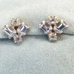 Vintage blue topaz rhinestone silver clip earrings. Circa 1980's.