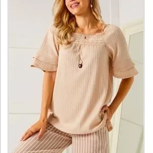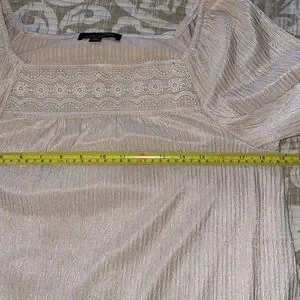 Champagne Pleated Lace-Trim Square Neck Tunic