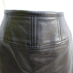 Vintage Leather Skirt Black Lining Buttery Soft Center Back YKK Zipper plus Bar Clasp. Tagged Size 4. Measures Small.