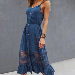Blue Lace Buttons detail Ruffle Hem Cami Dress