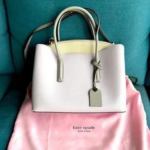 This Lavender NWT handbag is everything Kate Spade is about. The tri-colored bag can be worn as a crossbody, or if the straps are removed, it becomes a spacious tote. This tote’s Tri- colors is all about Spring and Easter.