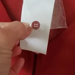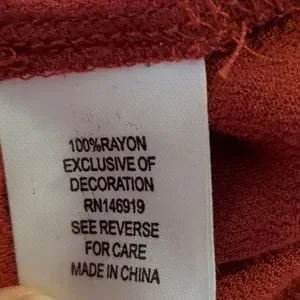 Fun top in a burgundy/brick color. Tie-up bottom front. Long lace embellished sleeves. Button up front with V neck.
